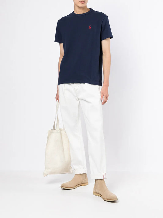 camiseta de algodão com logotipo bordado