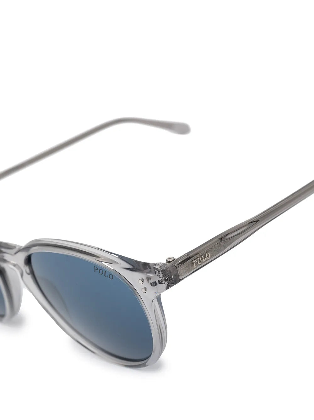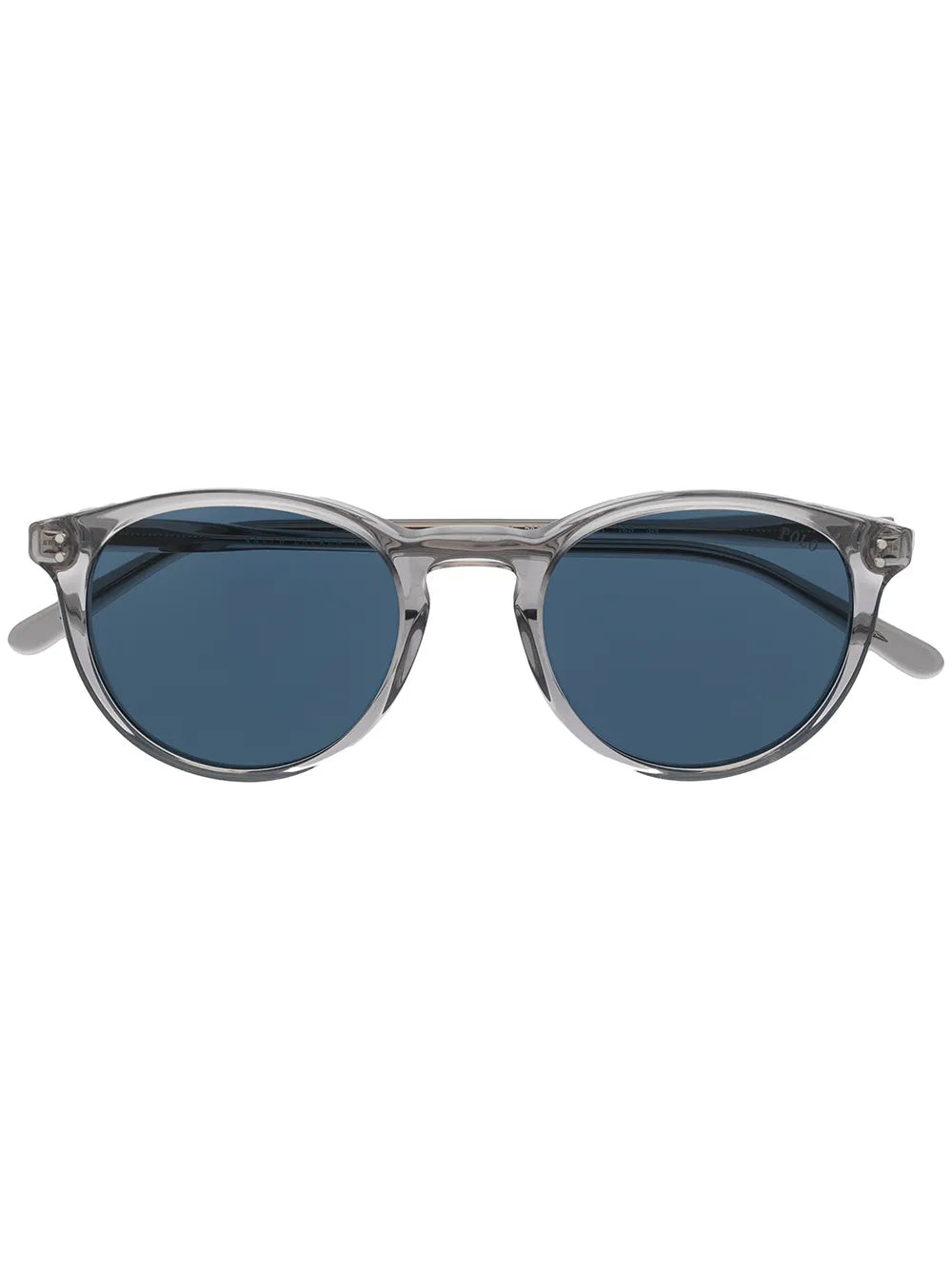 Armação pantos cinza, lentes azuis escurecidas, hastes retas, painéis laterais com logotipo. Sabemos que você vai cuidar deles, mas esses óculos vêm com proteção, para qualquer eventualidade.
