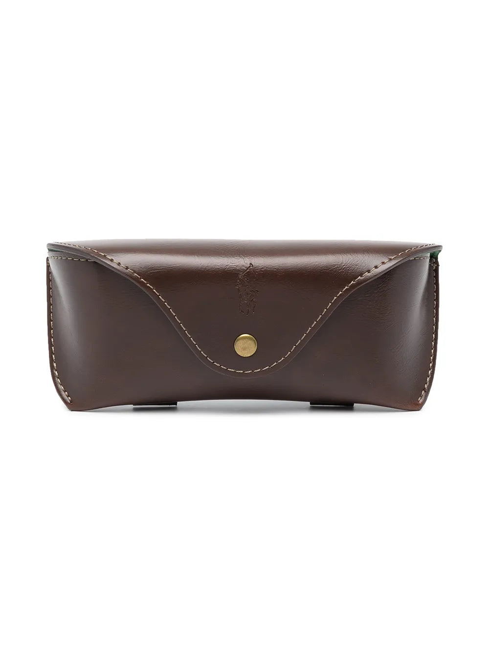 lentes metálicas douradas com tonalidade azul, ponte dupla, ponte nasal, hastes retas, armação piloto. Sabemos que você vai cuidar deles, mas esses óculos vêm com proteção, para qualquer eventualidade.