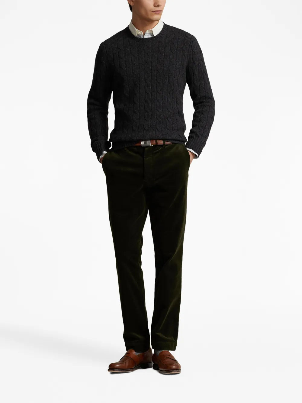 pulôver de gola redonda em tricô trançado