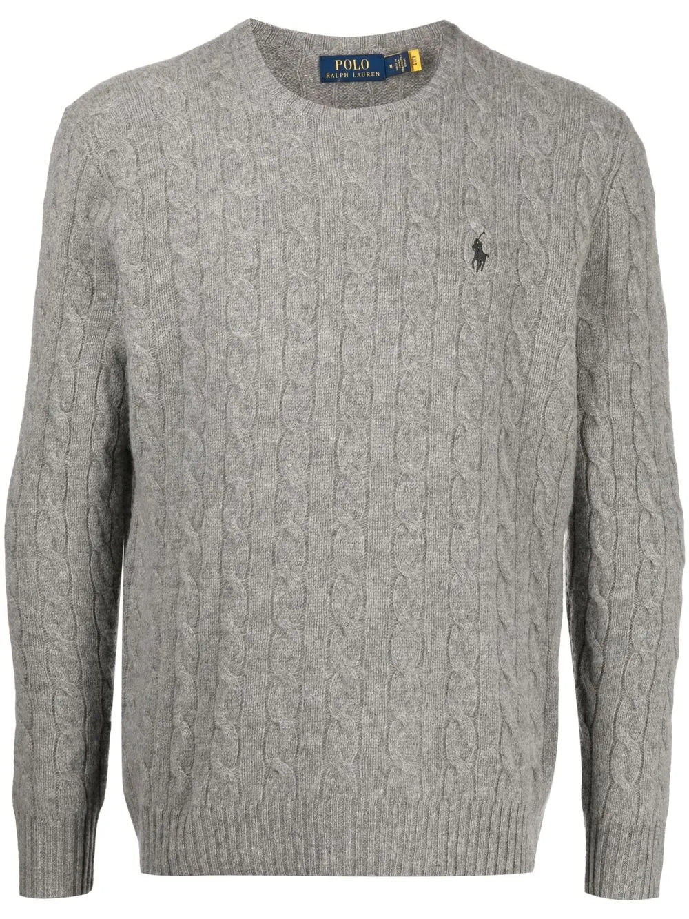 Polo Polo Pony com estampa exclusiva, gola redonda, mangas compridas, mistura de lã e cashmere cinza mesclada